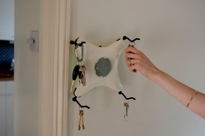 “We identified house-key hooks as an appropriate indicator for the presence and absence of people within the home. So, we programmed the router to switch off automatically when the last key is taken off of a hook. When someone returns home and re-engages a hook, it then switches back on in time for them to start surfing.