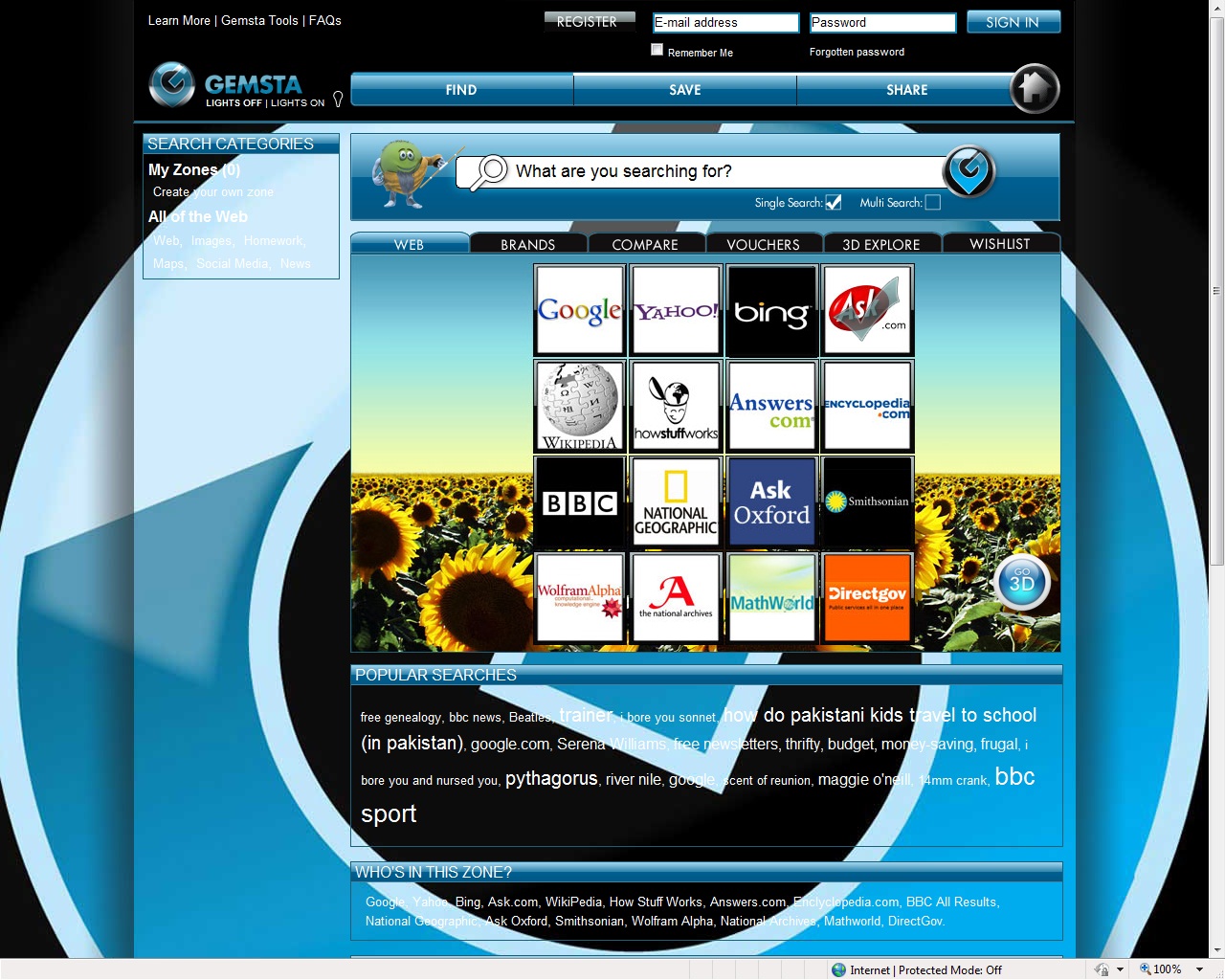 Gemsta’s unique MultiSearch technology, which allows users to search multiple sites simultaneously, can be now be customised to help find anything quickly and easily from a personal choice of sites. Gemsta requires no specialist software and is accessible from anywhere online. Up to 16 sites per zone can be organised into structured grids or funky frames with added colourful backgrounds.